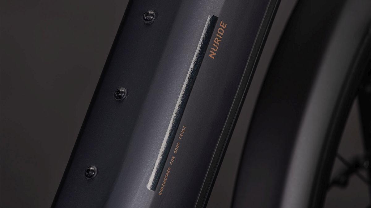 Der Nuride Hybrid Rahmen ist der Inbegriff funktioneller Ästhetik – finden wir zumindest und haben ihm neben unserer Efficient Comfort Geometry auch eine Federgabel mit 100 mm Federweg für ein Plus an Fahrkomfort und Kontrolle sowie großzügige Reifenfreiheit (sogar inklusive der mitgelieferten Schutzbleche) mitgegeben. Im Inneren verlaufende Züge und der integrierte Kettenschutz unterstreichen die cleane Optik. Ebenso harmonisch ins Rahmendesign integriert sind der Bosch CX Antrieb und der 800 Wh PowerTube Akku. On top gibt's serienmäßig verbaute Schutzbleche, Lichter, einen Seitenständer und: unseren formschönen, stabilen semi-integrierten Gepäckträger 2.0. Da kann das nächste Zweiradabenteuer direkt starten, oder?