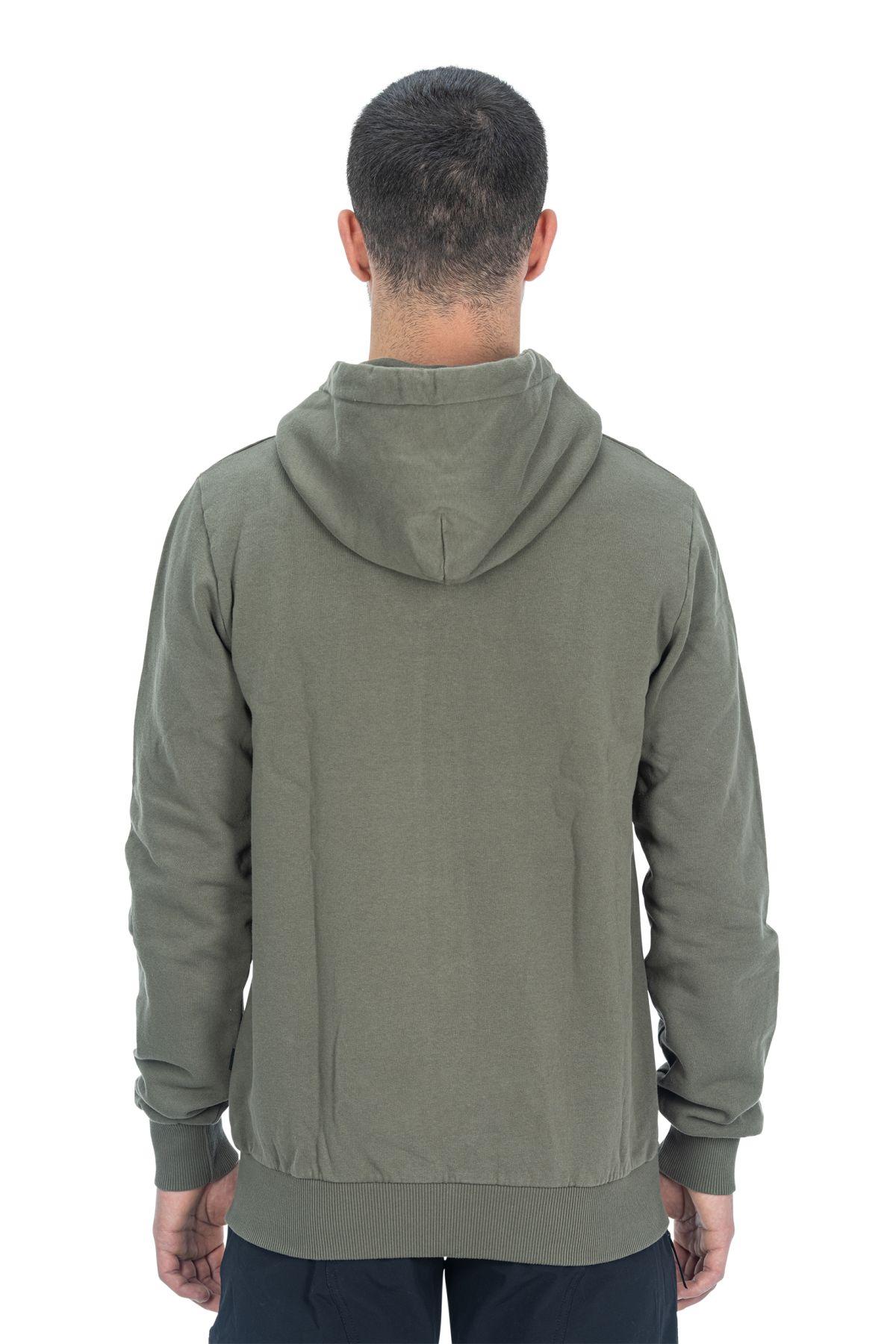 weiches Material, Bio-Baumwolle, Bauchtasche, durchgehender Frontreißverschluss, Logo-Applikation, Model ist 186 cm groß, Model trägt Größe L