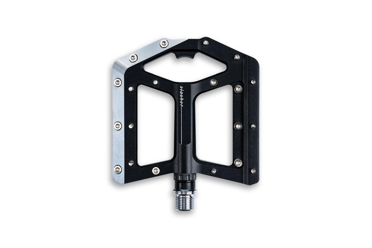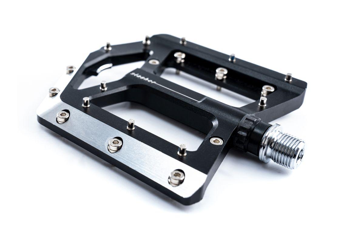 CNC-gefräster Aluminiumkörper, 10 austauschbare Pins, 2 Industrielager und 1 Gleitlager pro Pedal,CroMo-Achse, Pinhöhe über Unterlegscheiben einstellbar, integrierter Flaschenöffner
