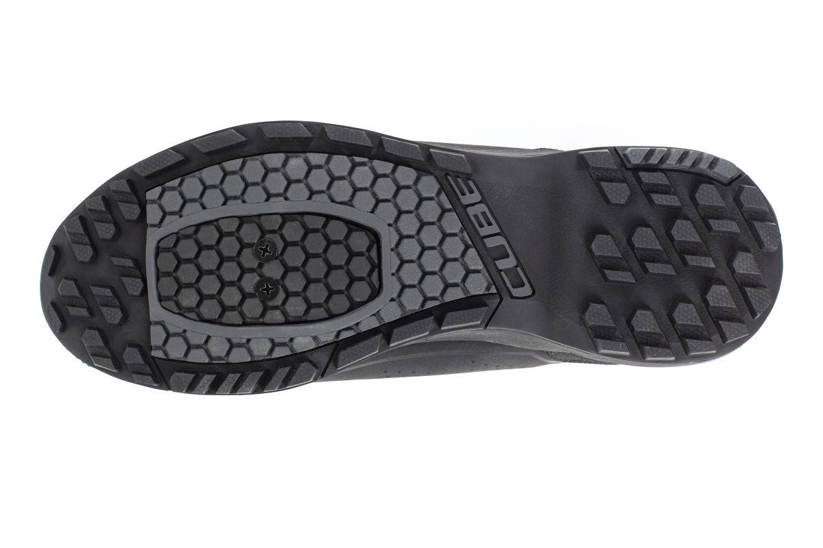 Stylischer All Terrain Schuh mit praktischem Schnürverschluss und toller Passform dank ergonomisch optimierten CUBE Natural Fit Leisten und Innensohle. Clevere Features wie die Einstiegshilfe und der Laceholder machen das Leben leichter, während die griffige Gummi-Außensohle für Klickpedale auch beim Gehen tollen Halt gibt. Das robuste Obermaterial und die verstärkte Zehenkappe schützen den Fuß, dank Luftlöcher und Mesh-Konstruktion bleibt selbiger aber immer angenehm belüftet. Das reflektierende Fersenelement schenkt zusätzliche Sicherheit durch mehr Sichtbarkeit bei schlechten Lichtverhältnissen.