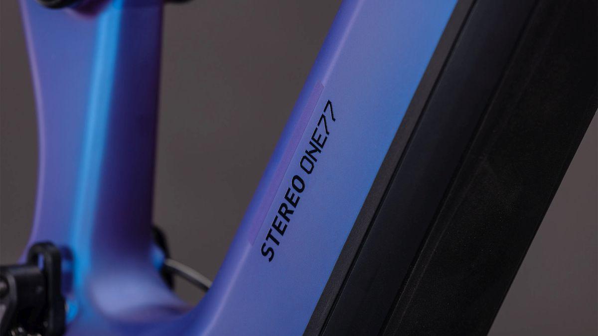 Der Rahmen des Stereo Hybrid ONE77 HPC ist wahrlich eine Klasse für sich, denn hier treffen 170 mm Federweg an der Front und am Heck auf ein Mullet-Set-up mit einem 29 Zoll Vorderrad und 27.5 Zoll Hinterrad. Damit werden Big-Mountain-Trail-Träume wahr! Wie immer bei CUBE maximal detailverliebt konstruiert auch der Rest: Integrated Cable Routing sorgt für einen supercleanen Look. Dazu kommt ein Steuersatz zur Winkelverstellung, mit dem sich das Handling an individuelle Vorlieben und Anforderungen anpassen lässt. Außerdem haben wir den 800 Wh starken PowerTube Akku gleich über dem Bosch CX Motor sauber und formschön ins Carbon-Unterrohr integriert. Für einfachere Ersatzteilverfügbarkeit gibt's ein UDH am Aluminium-Hinterbau – und weil wir auch eine Direct Mount Kettenführung verbaut haben, geht's mit diesem Fully selbst bei schwierigen Bedingungen weiter, weiter und immer weiter.
