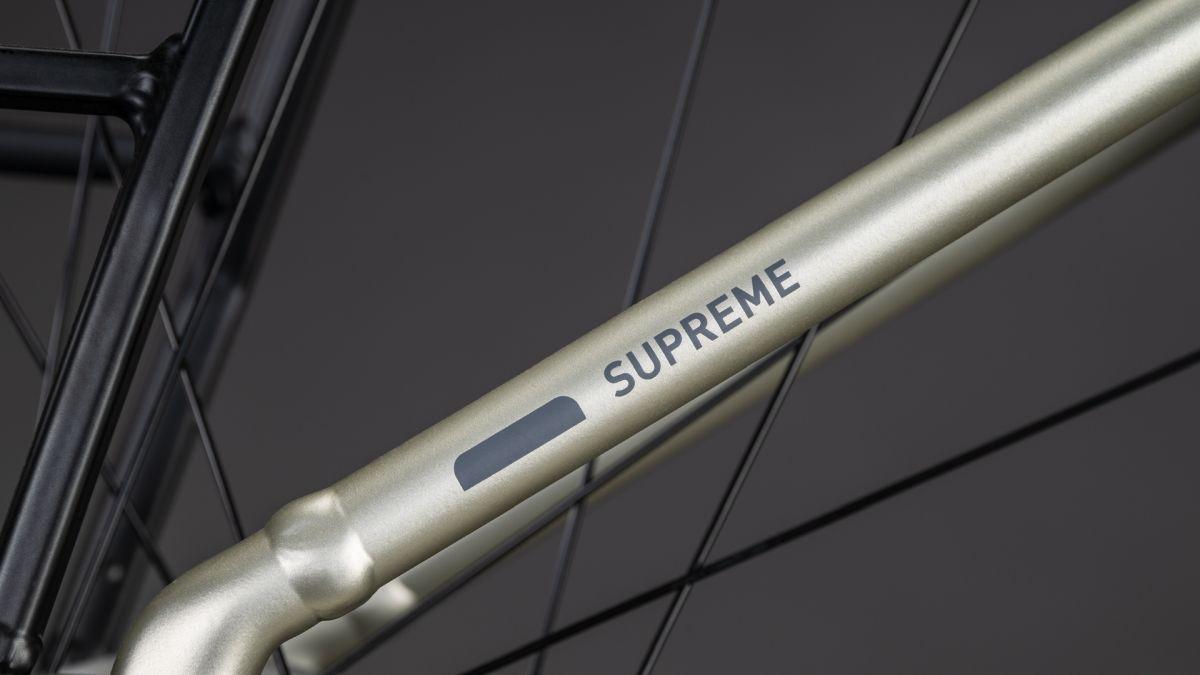 Wenn's auf die Details ankommt, hat der Supreme Hybrid Rahmen ganz klar die Nase vorn. Sein Bosch Performance PX Antrieb mit bis zu 90 Nm Drehmoment bietet ebenso geräuscharme wie geschmeidige Unterstützung im Vorwärts und sein 600 Wh starker Bosch PowerTube Akku fügt sich formschön und dezent ins Unterrohr ein. Unser Smooth Welding Verfahren unterstreicht die cleane, elegante Linienführung des Chassis', das in vielen verschiedenen Größen von 42 bis 58 cm für die optimale individuelle Passform verfügbar ist. Dazu kommen unser Integrated Cable Routing und ein X-Connect Kabel für eine aufgeräumte Optik und auf dem ebenso stabilen wie ästhetisch ansprechenden semi-integrierten Gepäckträger 2.0 fährt sämtliches Hab und Gut mit. Last, but not least haben wir Schutzbleche, eine komplette Lichtanlage und einen Seitenständer montiert. Also alles dabei, was unterwegs wichtig ist!