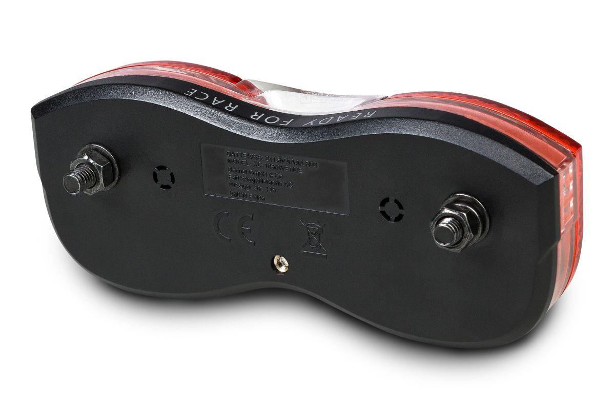 Gepäckträgerrücklicht, StVZO zugelassen, 3 LEDs, inklusive Batterien, spritzwassergeschützt, 80 mm Abstand
