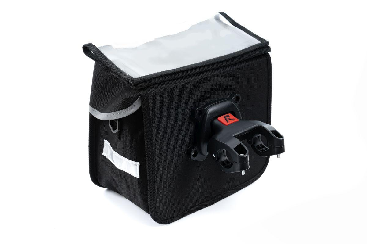 Klick&Go Lenkerhalterung für einfache (De-)Montage der Tasche, reflektierendes Logo, passend für Lenkerdurchmesser 25.4 - 31.8 mm, Tragegriff und Schultergurt