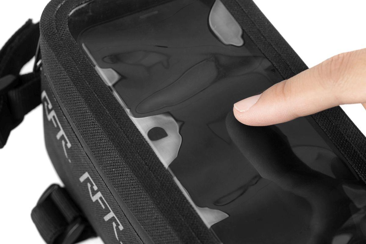 wasserabweisend, abriebfestes Außenmaterial, PVC-frei, verschweißte Konstruktion, reflektierende Elemente, drei Klettverschlusshalterungen bieten besten Halt am Rahmen, zusätzliches Verlängerungsband für ein breites Oberrohr, integriertes Innenfach mit Touchscreen-Folie bietet Platz für alle Mobiltelefone mit einer Maximalgröße von 16 x 8 cm (LxB), großes Sichtfenster 15,2 x 6,5 cm (LxB)