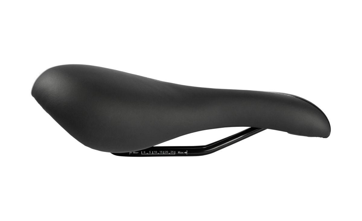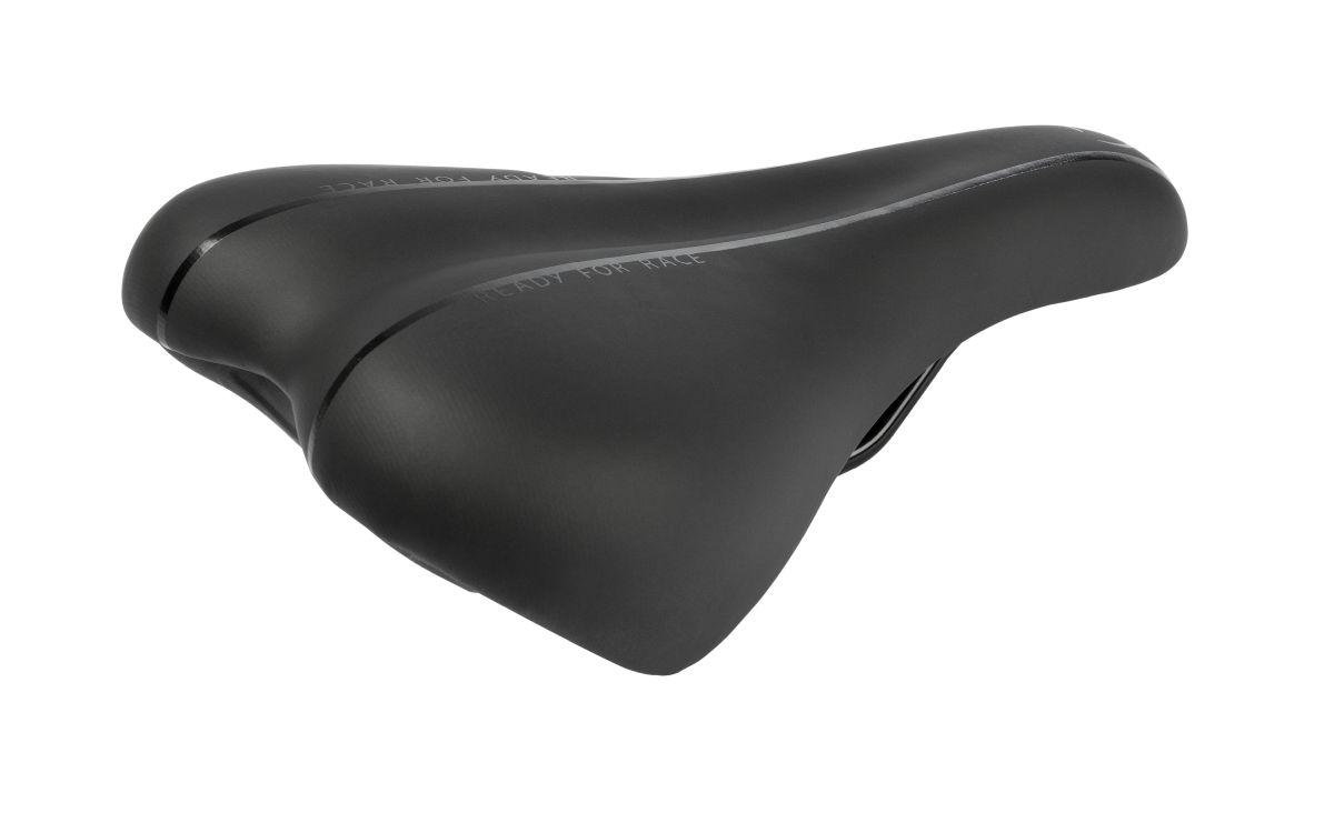 Dual-Density Technologie für die Entlastung an den Sitzknochen, Gel-Padding für eine gleichmäßige Druckverteilung, ergonomische Aussparung für empfindliche Nervenbereiche, Genitalaussparung in der Sattelschale